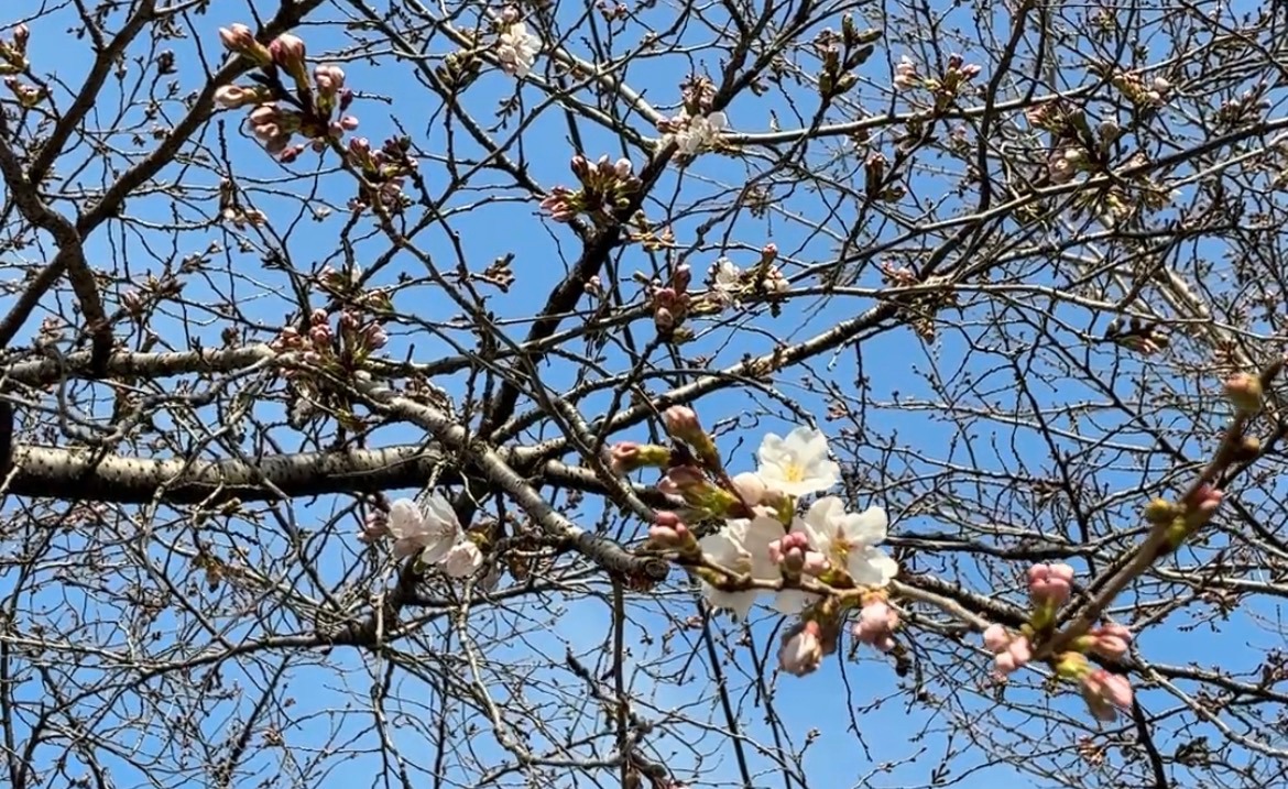 哲学の道の桜がついに芽吹き