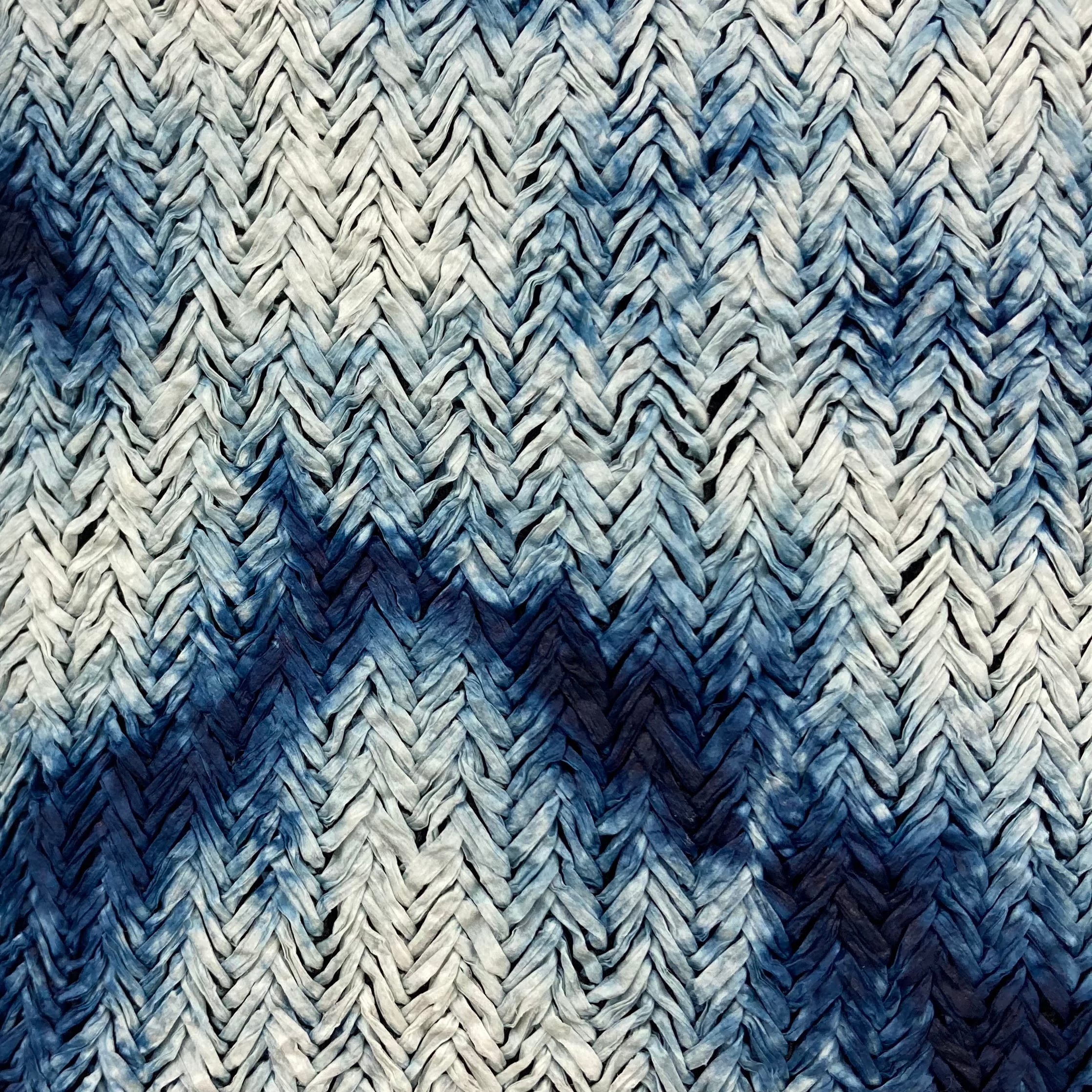 This fabric is knitted from natural washi (Japanese paper) yarn made from Manila hemp. Manila hemp is a remarkably strong and resilient fiber, characterized by its superior moisture and water resistance―qualities that also make it an essential material for marine ropes and Japanese banknotes. By knitting polyester yarn into the backing to reinforce these robust fibers, we have significantly enhanced the fabric's overall strength. The result is a unique material that retains the authentic texture of washi on the surface while providing practical durability. This fabric is meticulously crafted by skilled artisans in Japan.