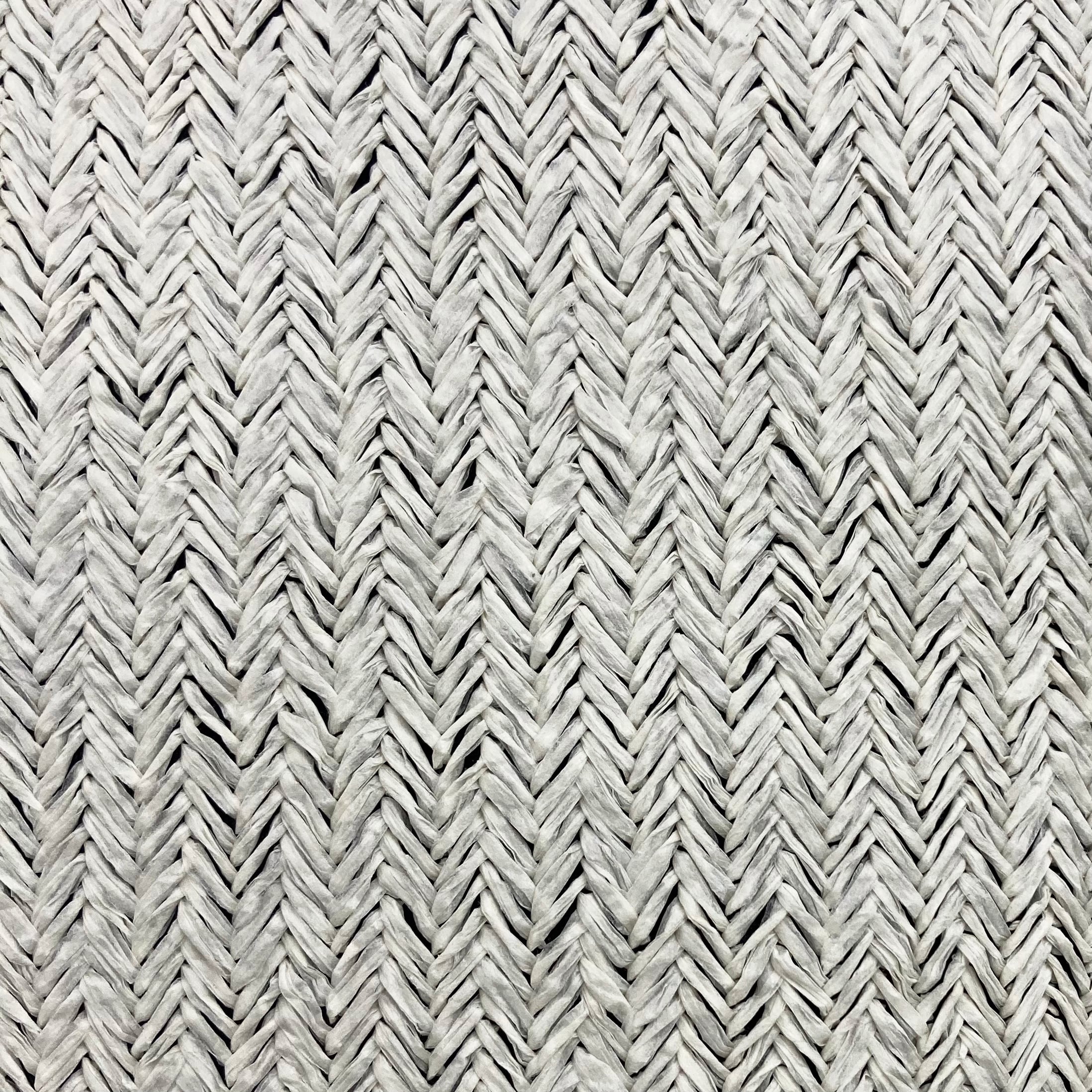 原料にマニラ麻を使用した、天然素材の和紙糸を編み上げています。マニラ麻は強靭で弾力に富み、耐湿・耐水性にも優れた繊維です。船舶用ロープや日本紙幣の原料にもなるこの強靭な繊維を、裏側に編み込んだポリエステル糸で補強することで、和紙布の強度を大幅に高めました。表面は和紙本来の質感を活かしつつ、実用的な耐久性を兼ね備えたユニークな素材です。国内の熟練職人が、丹精込めて丁寧に編み上げています。